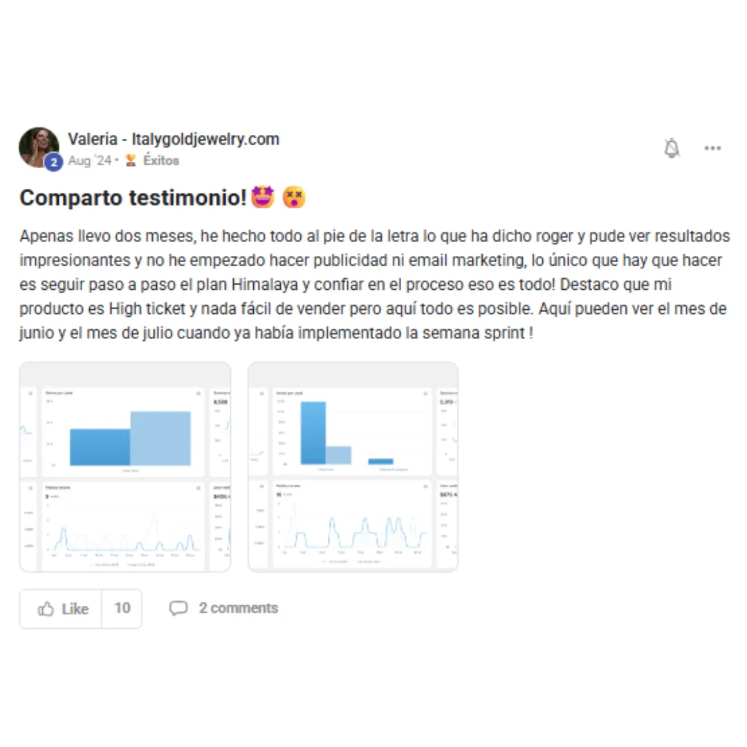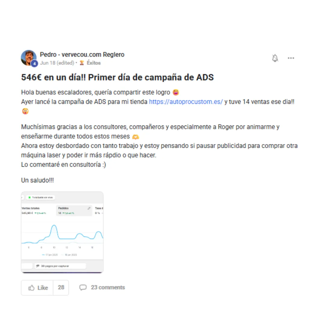 Mi equipo y yo predicamos con el ejemplo: actualmente gestionamos nuestras propias tiendas de comercio electrónico, generando €300,000 al mes. Además, no garantizamos resultados. Quien te garantice resultados intenta sacarte el dinero. Si lo garantizaran, todos lo harían, y ambos sabemos que no es cierto.
