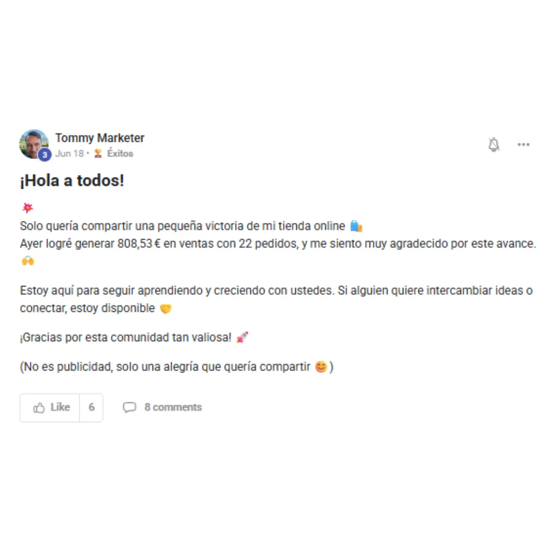 Sí, ofrecemos formación de alta calidad y soporte continuo para guiarte en cada paso del proceso. Incluimos llamadas grupales y formación detallada para ayudarte a poner en marcha tu tienda y comenzar a generar tus primeras ventas.